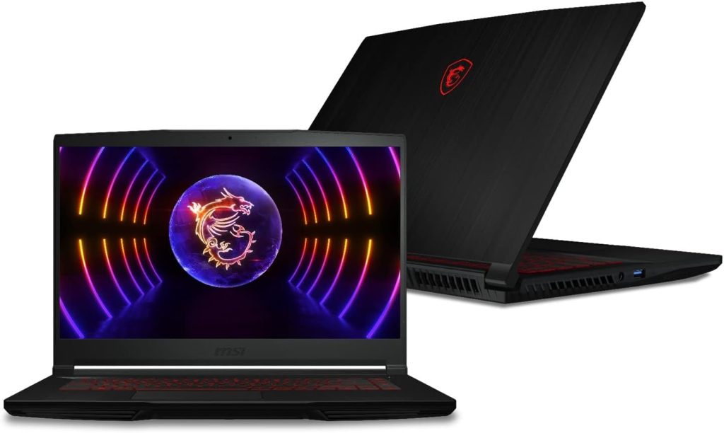MSI Thin GF63 tipis 21.7mm, i5-12450H + RTX 3050 Ti 4GB. Dota 2 Ultra 200 FPS, edit Premiere lancar. Layar 15.6″ FHD 144Hz.